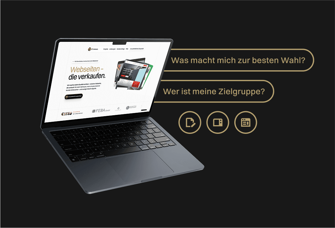 Wir machen deine Qualität sichtbar – mit einer Webseite, die überzeugt. Für mehr Vertrauen, mehr Umsatz, bessere Kunden & Bewerber – und weniger falsche Signale.